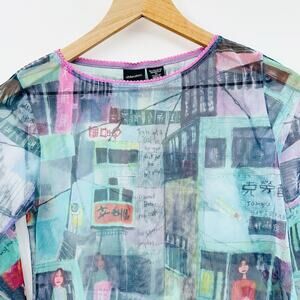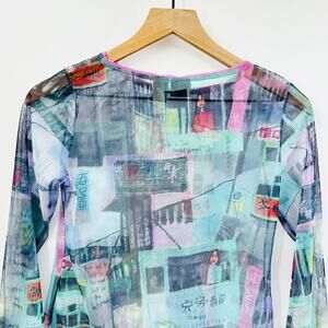 Y2K Xhilaration Micro Mesh Long Sleeve Sheer Graphic Shirt Size Medium