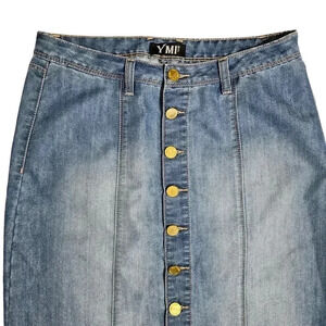 Y2K YMI Denim Jean Button Front Midi Maxi Skirt