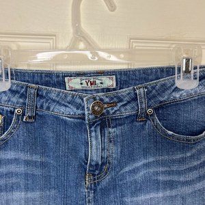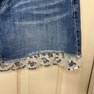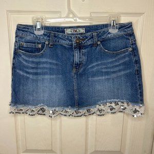 Y2K YMZ Lace Sequins Trim Mini Denim Skirt Size 11