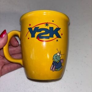 Y2K Yellow and Blue Ceramic Mug with Cartoon Design