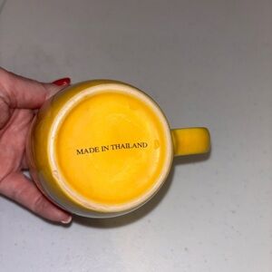 This vibrant yellow and blue ceramic mug from Source Unknown is a delightful addition to any dining collection. Featuring a playful cartoon character and a bold Y2K logo, it brings a touch of whimsy to your drinkware. The mug's ergonomic handle ensures a comfortable grip, perfect for savoring your favorite hot beverages.