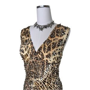 Y2K Zoey Beth Textured Animal Print V Neckline Tank Top Size Large