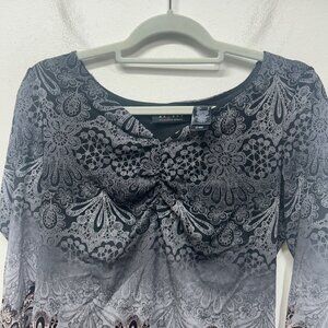 Y2K axcess gray gradient geometric sheer print blouse top large