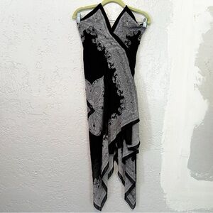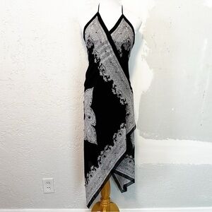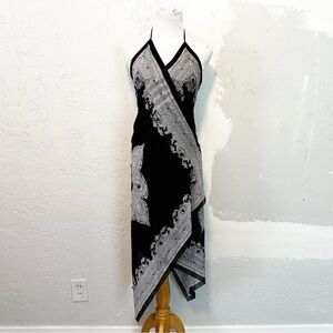 Y2K black and white asymmetrical halter scarf dress size 2.