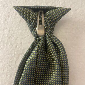 Get this Y2K boys geometric print yellow blue Dupont Teflon clip necktie