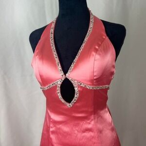 Y2K cache formal mini dress! Perfect for homecoming or going out. pink with cutouts on the front and lower back. Has beaded trim detailing