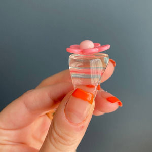 Y2K clear acrylic bubble ring w/ pink flower, 7.5