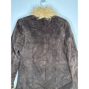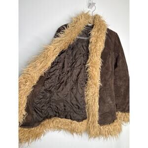 Y2K dELiA*s Suede Faux Fur Trim Jacket – Brown Shaggy Coat Size M (1990s/2000s)