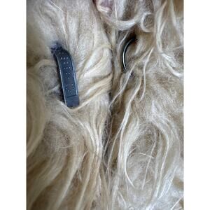 Authentic late 90s/early 2000s dELiA*s suede jacket featuring a genuine suede exterior and dramatic shaggy faux-fur trim along the collar, front, cuffs, and hem. Quilted lined with side pockets. Style 771140.