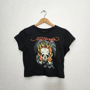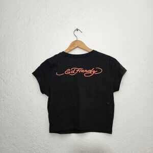 Y2K ed hardy black graphic cropped t shirt