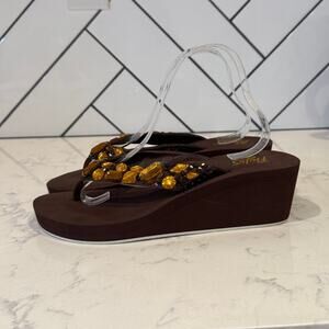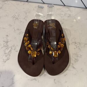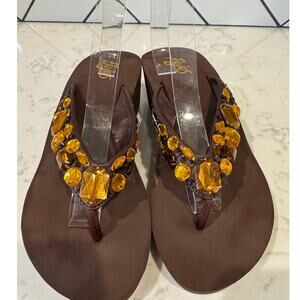 Y2K flojos Brown embellished faux gems platform wedge sandals size 10 baddie