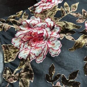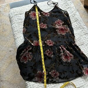 Great preowned condition except missing under slip. Could wear over your own slip, tshirt, or bralette. Beautiful velour flowers on sheer chiffon black fabric. SZ S. Please confirm measurements approximate laying flat in pictures as poshmark does not accept returns for fit issues. Please add see all ten photos provided.