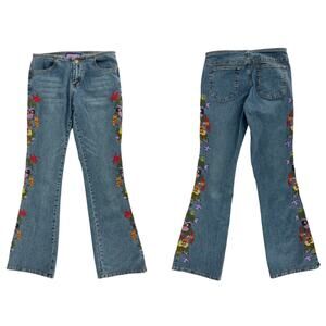 Y2K floral embroidered flare jeans Bubblegum 2000s vintage
