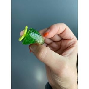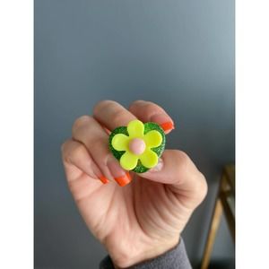 Y2K green sparkly chunky acrylic ring with yellow flower, 7.5
