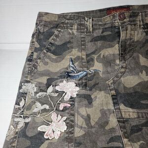 y2k jalate camo pleated asymetrical mini skirt Size 12 embroidered bird flowers