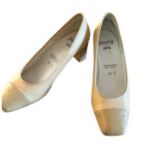 Y2K jenny by ara Milano Cap-Toe Pumps 8 – Beige/Tan Leather, 2" Block Heel, w/ Box