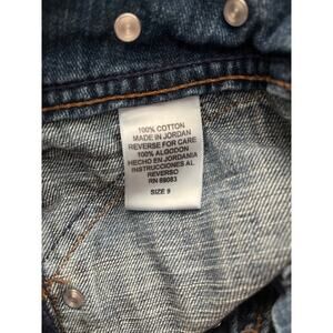 Authentic early 2000s l.e.i. “Ashley” ultra low rise jeans, made in Jordan from 100% cotton denim. Classic medium wash with light fading, curved front pockets, and signature l.e.i. stitching and hardware details. These jeans sit well below the waist with a slightly flared leg — the ultimate Y2K low-rise cut, reminiscent of mid-2000s mall style and pop culture icons like Britney and Hilary Duff.