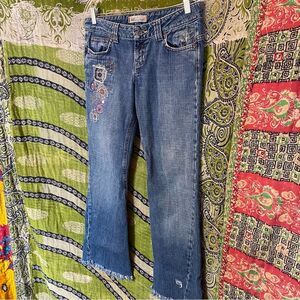 Y2K lei Sophia Embroidered Hipster Flared Jeans Size 7