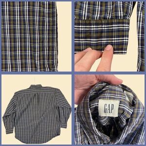 Y2K plaid L GAP shirt, vintage 2000s mens blue & green long sleeve button down