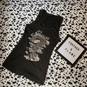 A few missing Swarovski crystals, but overall great condition! No holes or stains. Perfect with a mini bag and low rise flares or denim shorts going into the spring!