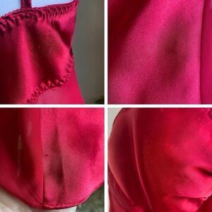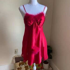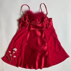 Fit & features: Fits true, this item does stretch. This item is quite short, be sure to check measurements. Has adjustable straps, padding at the bust & feather trim along the neckline & on the ties. Shown w/the straps adjusted to fit on an XS mannequin