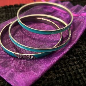 Y2K set of 3 bangle bracelets turquoise blue & silver no markings GVC