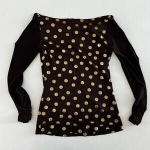 Y2K split sleeve polkadot top. By Unica. Size small. Made in the USA. Ring details on shoulders.