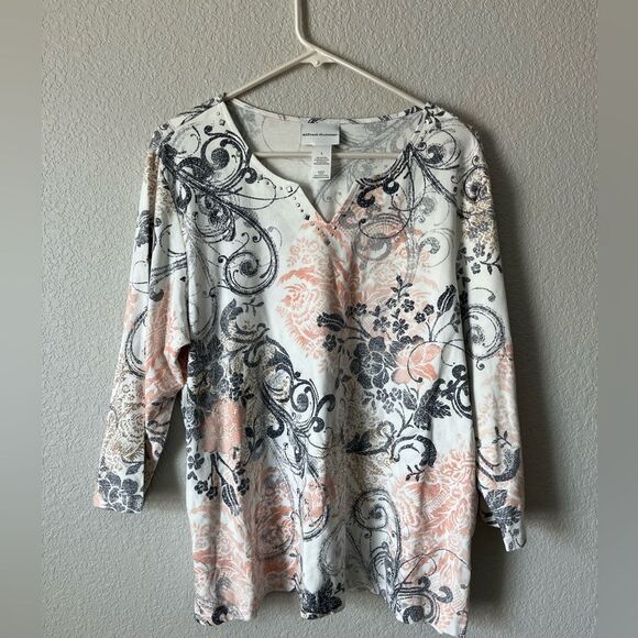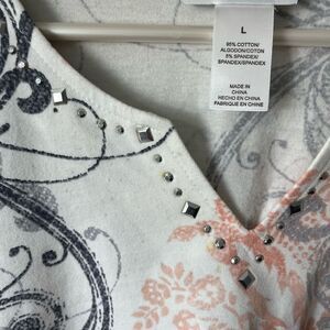 Y2K studded goth Floral paisley Print Women's Top L cotton blend