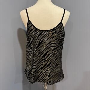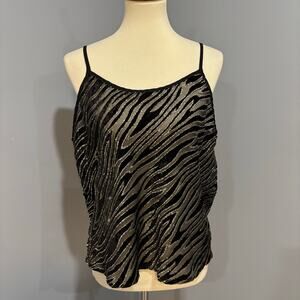 Y2K, velvet and sheer zebra glitter, sparkle spaghetti strap shirt, size large