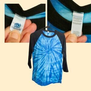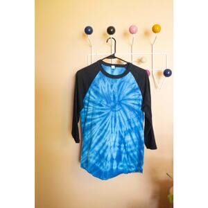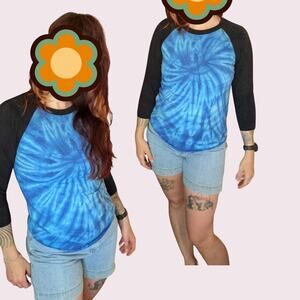 Y2K vibes three quarter length sleeve ringer t with blue tye dye