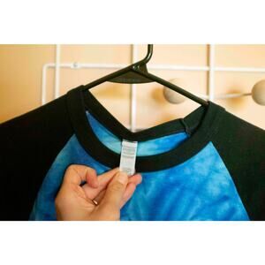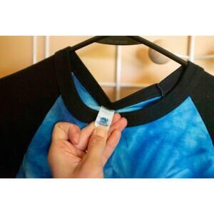 Vintage Y2K ringer t-shirt with blue tie-dye pattern and three-quarter length sleeves. Features a raw-style hem for that perfectly undone early 2000s look. Marked a size S but flexes comfortably up to a M. Soft and stretchy fabric with light wear that adds to its laid-back charm. Ideal for layering or pairing with low-rise jeans for full 2000s vibes.