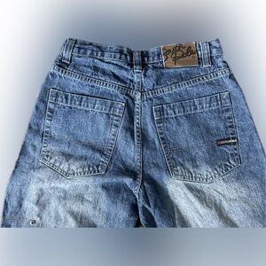 Stylish denim shorts featuring Southpole brand patches. Perfect for casual wear.vintage 90s South Pole. Size “ 18” tape measurement included in photos