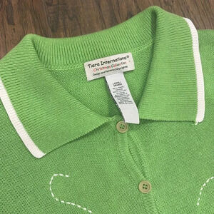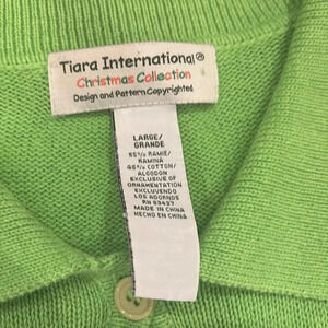 Cute “ugly Christmas sweater” lime green button up cardigan with cute collar and Christmas scene. Good vintage condition, some slight wear