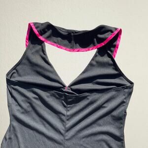 Y2K vintage black ruffled halter dress with pink trim asymmetrical hem 2000s