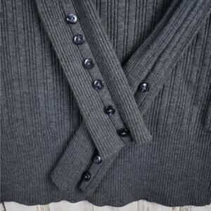 • MATERIAL - Lightweight ribbed knit sweater material in dark gray.