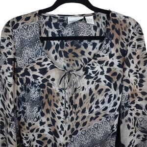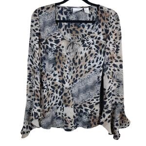 Y2K vintage sheer leopard print long sleeve ruffle blouse shirt top small flowy