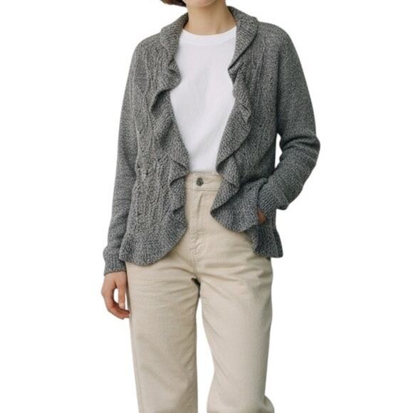 Waterfall front knit sweater with unique silver clasp closure and beautiful knit detail. Very soft! Y2K vibe.