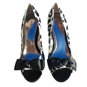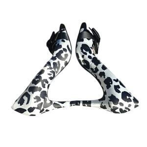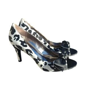 Y2K white and black animal Print peep toe pumps sz 7.5