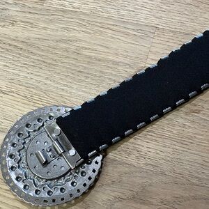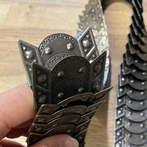 Y2K women’s Silver and Black Metal Belt wide scales chunky with Large Gem