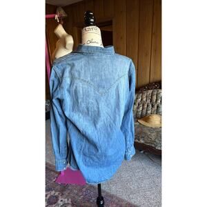 sz medium cotton 22" p2p, 26" length pearl snap closure. 2 small front pockets with southwest details