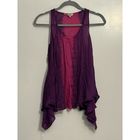 Y2K/2000s GUESS Women's Sheer TieDye Purple and Pink Tank Top Racerback - Size M