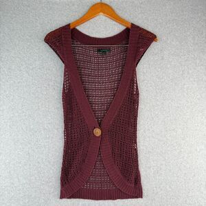 Y2K/90s Express Burgundy Knit Short Sleeve Button Up Cardigan Boho Chic Whimsy S