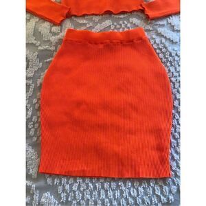 Such Spice Girls Vibes!!! So cute, Ribbed Two Piece Mock Turtleneck, long sleeve cropped top and pull on banded miniskirt! Bright orange! Ribbed - allows some stretch. Double knit jersey. Flat Lay Top- Size M, L 16”, P-P 15.5”. Miniskirt- L 17.5”,W 10.5”. So darn awesome orange crop top and skirt set. #dopamine #tangerine #lolita