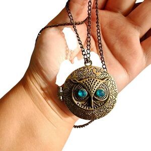Y2K Antiqued Owl Locket Necklace