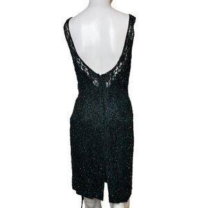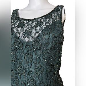 Y2K Beaded Lace Deep Green Carmen Marc Valvo Cocktail Dress W/ Jacket Size 4