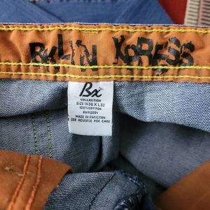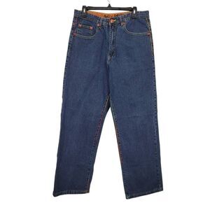 Y2K Brooklyn Bklyn Xpress Skater Grunge Rave Loose Jeans 34x30 Floral Stitching