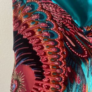 Y2K Caché Peacock Pattern Silk Beaded Halter Top