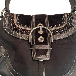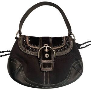 Y2K Coach Soho Hobo Bag Black Jacquard Leather Suede Studded F11517
