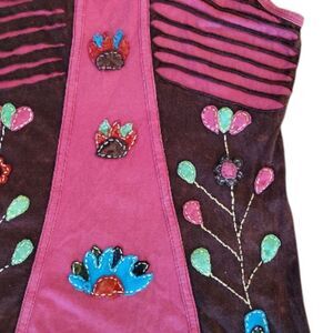 Y2K Colorful Embroidered Applique Festival Boho Nepal Cotton Mini Dress Medium