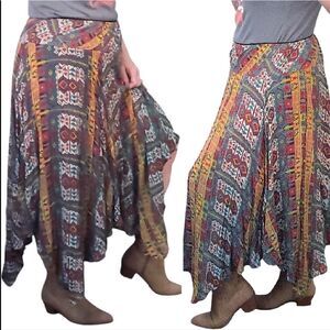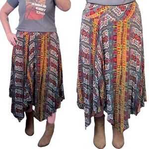 Y2K Colorful Printed Pull On Fairycore Boho Grunge Handkerchief Skirt Large